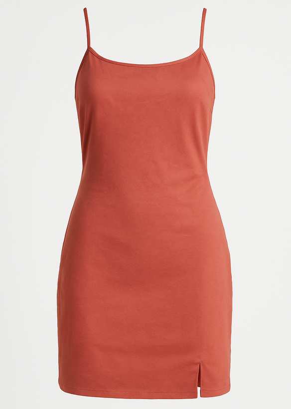 پیراهن کوتاه با طراحی ساده اما شیک که با رنگ آجری گرم خود، جلوهای خاص و منحصر بهفرد دارد.
