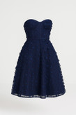 پیراهن زنانه کوتاه مجلسی سرمه ای برند چی چی لاندن جنس تور و حریر آستردار