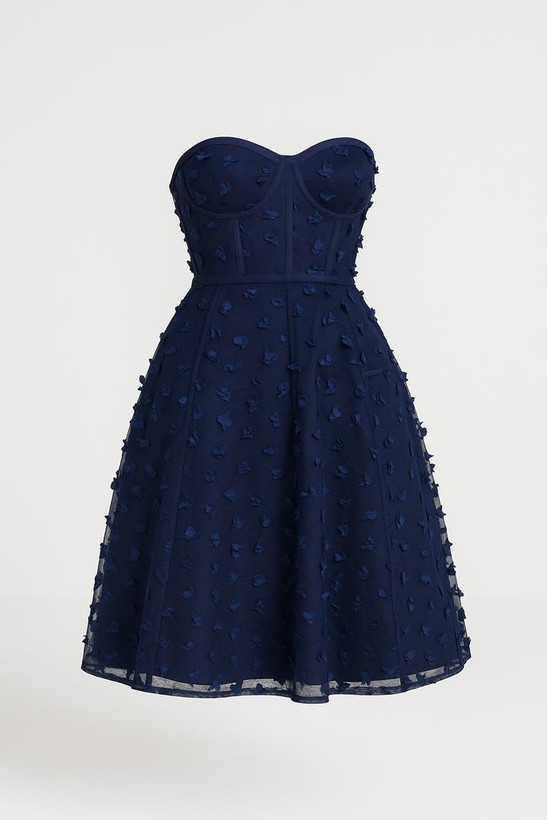 این پیراهن مجلسی کوتاه با طراحی دکلته و استایلی شیک، انتخابی ایدهآل برای مراسمهای خاص است.