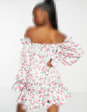 پیراهن کوتاه گلدار آستینبلند با یقه آف شولدر – زنانه، لطیف و بهاری