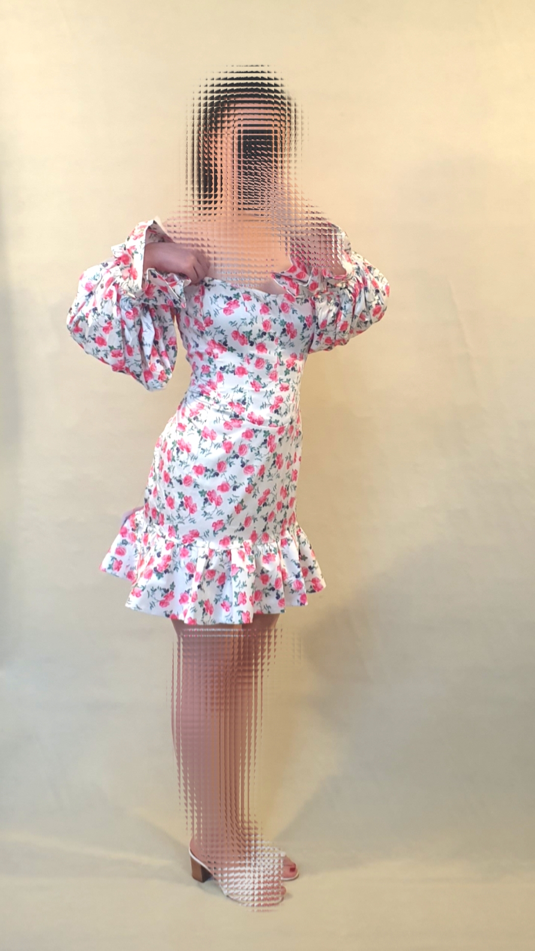 این پیراهن شیک و رمانتیک با پارچهای لطیف و طرح گلهای رز صورتی، تداعیگر لطافت بهار و ظرافت زنانه است. طراحی یقه آف شولدر (یقه باز روی شانهها) به همراه آستینهای پفی بلند با سرآستین چیندار، استایلی جذاب، متفاوت و بسیار دخترانه ایجاد کرده است. فرم جذب بالاتنه و چینهای پاییندامن، جلوهای زنانه و منحصر بهفرد به این لباس میبخشد.