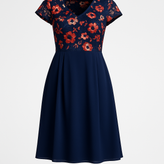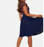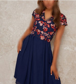 این پیراهن زنانه با رنگ سرمهای عمیق و جزئیات گلدوزیشده روی بالاتنه، انتخابی عالی برای مراسم رسمی، مهمانیهای نیمهرسمی یا قرارهای خاص است. قسمت بالایی لباس از پارچه گیپور ظریف با گلهای قرمز و نارنجی تشکیل شده که جلوهای هنری و رمانتیک به استایل میبخشد. دامن کلوش با پارچهای نرم و ریزشدار، راحتی و ظرافت را همزمان فراهم میکند.