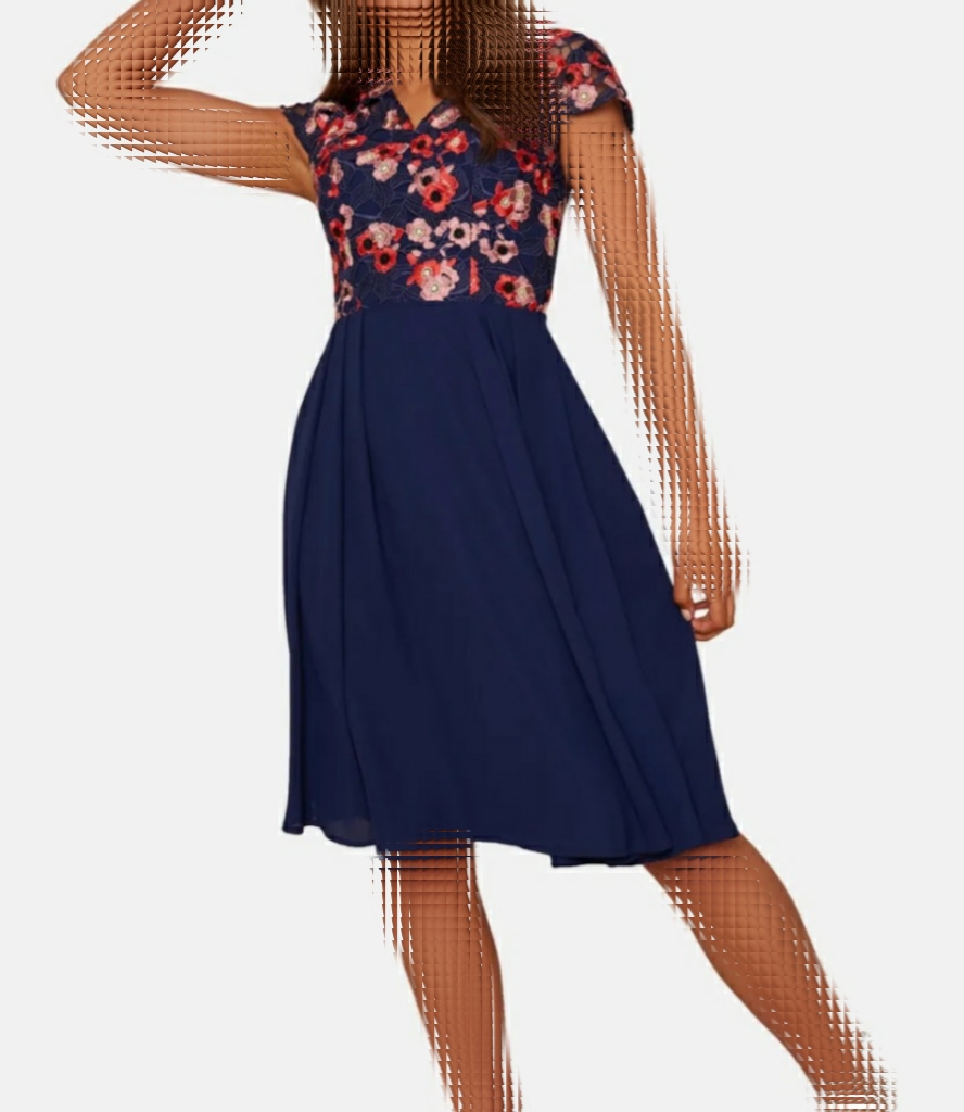 این پیراهن زنانه با رنگ سرمهای عمیق و جزئیات گلدوزیشده روی بالاتنه، انتخابی عالی برای مراسم رسمی، مهمانیهای نیمهرسمی یا قرارهای خاص است. قسمت بالایی لباس از پارچه گیپور ظریف با گلهای قرمز و نارنجی تشکیل شده که جلوهای هنری و رمانتیک به استایل میبخشد. دامن کلوش با پارچهای نرم و ریزشدار، راحتی و ظرافت را همزمان فراهم میکند.