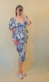با این پیراهن جذاب میدی با طرح پلنگی سیاهوسفید، جسورانه و خاص ظاهر شوید! طراحی این لباس با یقههفت دراپدار، آستینهای پفی و کمربند گرهای در دو طرف کمر، بهزیبایی فرم بدن را برجسته میکند و ظاهری زنانه و شیک به شما میدهد. پارچهی لطیف و سبک آن با چاپ ترکیبی حیوانی (لئوپارد و گورخری) حس جسارت و اعتمادبهنفس را القا میکند. این مدل مناسب مهمانیها، دورهمیهای خاص یا حتی قرارهای شام است — جایی که بخواهید متفاوت باشید و بدرخشید.