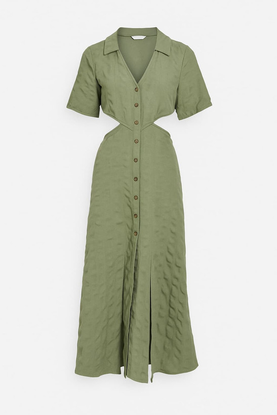 پیراهن ماکسی زنانه با طراحی برشدار – رنگ سبز زیتونی ملایم