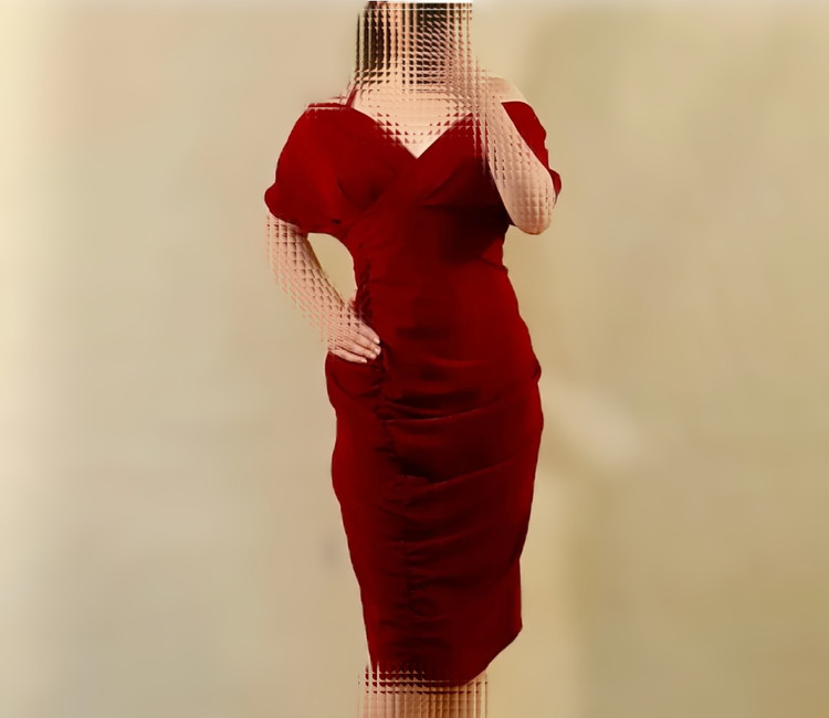 یقهی دلبری (قلبی) به همراه بندهای باریک و طراحی بدون شانه (off-shoulder) حالت زنانه و شیکی به لباس داده. بخش بالاتنه با یک پیچ ظریف و گرهای طراحی شده که توجه را به سمت بالای بدن جلب میکند، در حالی که چینخوردگیهای هوشمندانه در قسمت شکم و باسن کمک میکنند تا فرم اندام زیباتر و کشیدهتر به نظر برسد. چاک کوتاه پایین دامن هم نه تنها آزادی حرکت را بیشتر میکند، بلکه ظاهر لباس را جذابتر و پویاتر میسازد.