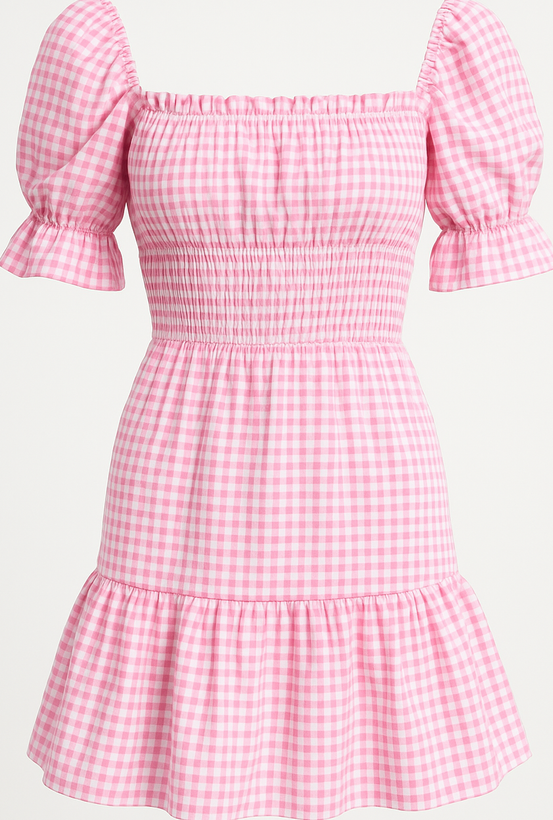 پیراهن کوتاه چهارخانه صورتی – استایل تابستانی، شیرین و بازیگوش