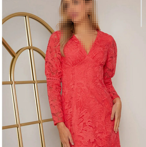 پیراهن زنانه کوتاه مجلسی قرمز مرجانی برند چی چی لاندن