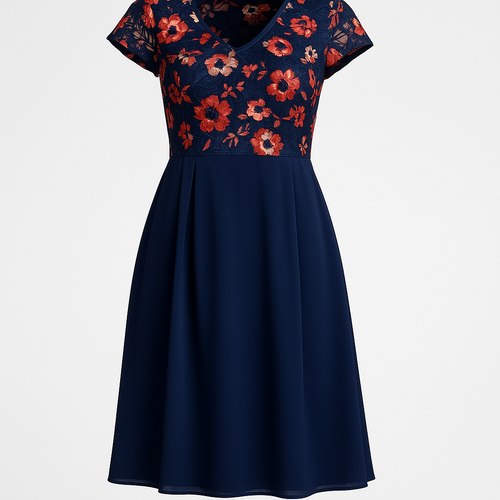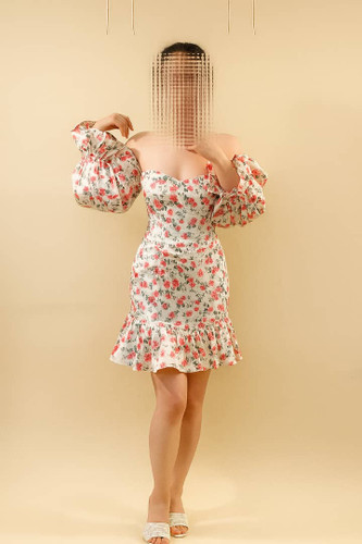 پیراهن زنانه مجلسی کوتاه گلدار نخی